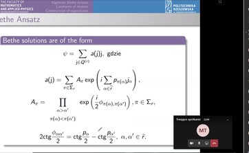 Seminarium było poświęcone analizie metod algebraicznych w zagadnieniu podstawienia Bethego (Bethe ansatz) dla jednowymiarowego układu cząstek posiadających spin. Tego typu łańcuchy stanowią ...