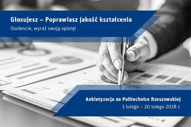 Na Politechnice Rzeszowskiej ruszył proces ankietyzacji. Studenci, uczestnicy studiów doktoranckich, słuchacze studiów podyplomowych oraz pracodawcy mają możliwość anonimowego wypowiedzenia się na tematy związane z oceną i poprawą jakości kształcenia.