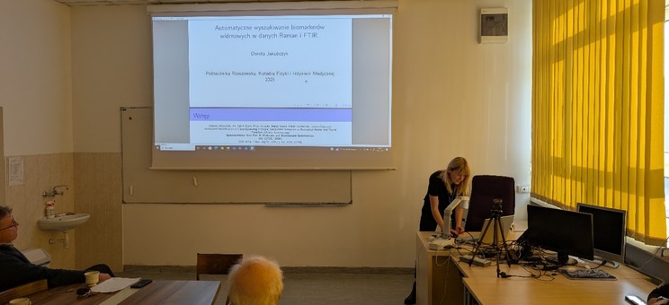 Referat przedstawia podejście do automatycznego wyszukiwania biomarkerów widmowych w danych spektroskopowych Raman i w podczerwieni z transformatą Fouriera (FTIR z ang. Fourier Transform Infrared Spectroscopy) pochodzących od dwóch grup: pacjentów chorych oraz osób zdrowych na przykładzie chorych na miażdżycę (ACS z ang. atherosclerosis) w oparciu o publikacje naukową [1]. Prezentowana metoda opiera się na systematycznej analizie głównych składowych (PCA z ang. Principal Component Analysis), pozwalającej znaleźć takie kombinacje składowych głównych, które najlepiej rozdzielają obie grupy. W tym celu wykorzystano metrykę Mahalanobisa (MD z ang. Mahalanobis Distance) oraz klasyfikator liniowej analizy dyskryminacyjnej (LDA z ang. Linear Discriminant Analysis), umożliwiające obiektywną ocenę jakości separacji, a także testy permutacyjne, które potwierdzają, że obserwowane różnice nie wynikają z przypadku. Na podstawie najlepszych podprzestrzeni PCA można wyznaczyć biomarkery spektralne, czyli fragmenty widma szczególnie istotne dla odróżnienia widm pacjentów chorych od widm osób zdrowych. Prezentowane jest również dodatkowe narzędzie potwierdzające najlepsze rozróżnienie tych grup tzw. t-rozkładowe stochastyczne osadzanie sąsiadów (t-SNE z ang. t-Distributed Stochastic Neighbor Embedding), które przekształca dane wysokowymiarowe do 2D lub 3D w taki sposób, aby zachować lokalne podobieństwa między punktami, dzięki czemu ujawnia wyraźne klastry i strukturę danych, której nie widać w oryginalnej przestrzeni.