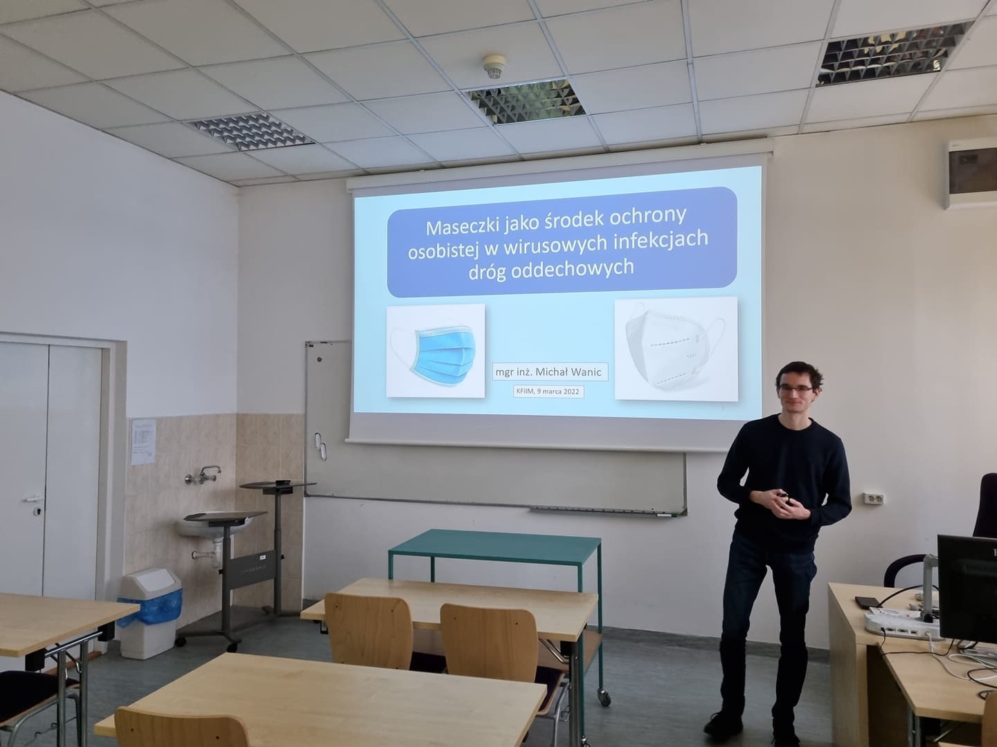 Seminarium pt. "Maseczki jako środek ochrony osobistej w wirusowych infekcjach dróg oddechowych" poświęcone było omówieniu aktualnego stanu wiedzy naukowej związanej z noszeniem maseczek (chirurgicznych, oddechowych i materiałowych) jako forma zabezpieczenia przed zarażeniem wirusami.