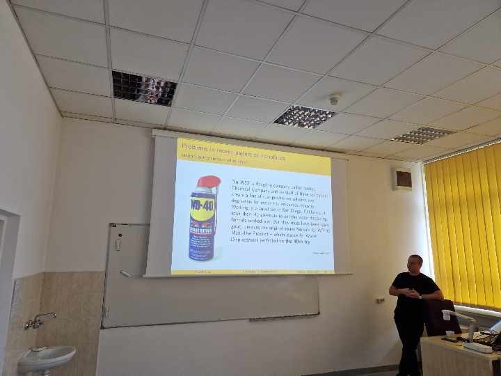 Wykład przybliżył informacje dotyczące materiałów funkcjonalnych powstających przy użyciu nanocząstek – nanocieczy. Omówione zostały techniki ich wytwarzania, podstawowe właściwości fizyczne oraz wybrane potencjalne zastosowania [1, 2]. Szczególny nacisk został położony na niedogodności i trudności związane z wykorzystaniem tych materiałów oraz wyzwania związane z ich zastosowaniami na dużą skalę. Na koniec autor przedstawił perspektywy dalszych prac w obszarze badań nad nanocieczami, wskazując potencjalnie najbardziej owocne kierunki działań.