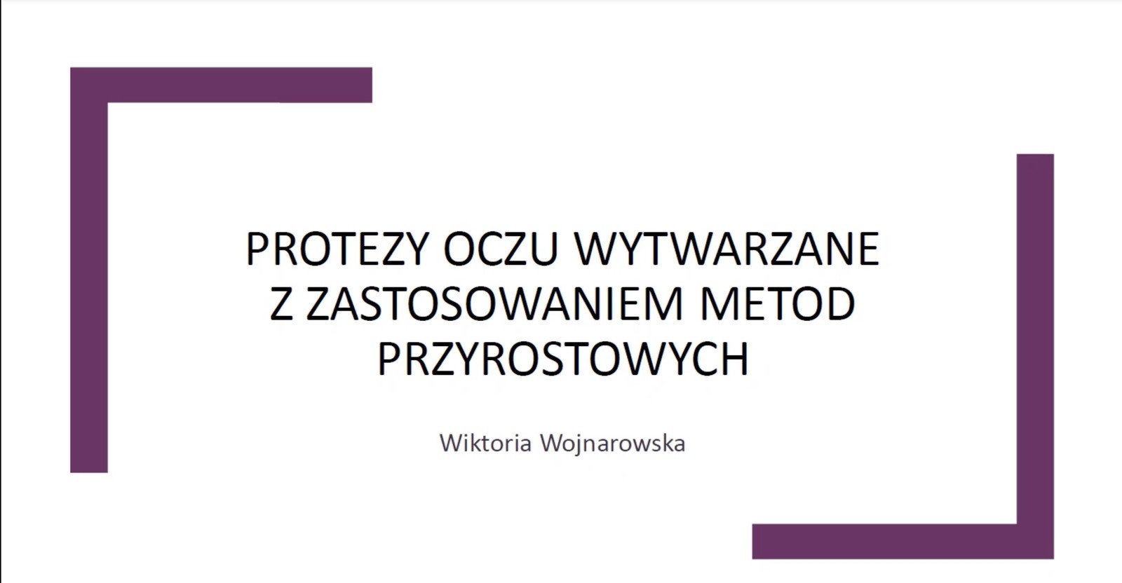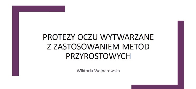 Referat dotyczył technologii otrzymywania protez oczu z uwzględnieniem nowych metod ich wytwarzania. Najczęściej zabieg wymagający użycia protezy oka jest przeprowadzany u pacjentów u których zastosowano leczenie onkologiczne lub jako element leczenia pourazowego. Protezy mają stanowić uzupełnienie brakującej gałki ocznej bez przywracania samej funkcji widzenia. Najczęściej ich użycie powiązane jest z zabiegiem chirurgicznym rekonstrukcji okolic gałki ocznej. Pani Mgr Wojnarowska przedstawiła główne zalety nowych metod otrzymywania protez gałek ocznych z wykorzystaniem druku 3D. Na wstępie Seminarium omówione zostały przypadki medyczne, w których konieczne było zastosowanie protezy oka. Wymieniono główne metody leczenia defektów i ubytków oraz trudności występujące podczas leczenia wad twarzoczaszki. Następnie przedstawiono różne rodzaje protez, między innymi tzw. epiprotezę, stanowiącą element gałki ocznej, zakładanej na istniejące niewidome lub kurczące się oko, a także protezy oczodołów, umożliwiające przywrócenie wyglądu zarówno brakującego oka jak i powiek.