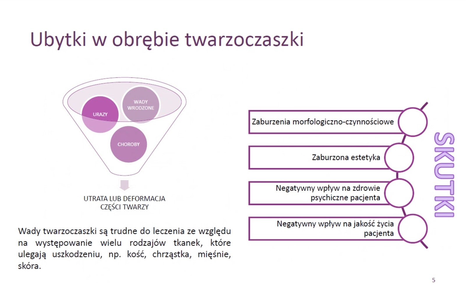 Zabiegi chirurgii plastycznej oczu stanowią istotny element poprawy komfortu pacjenta i pozwalają przywrócić naturalny wygląd twarzy. Obejmują one rekonstrukcje utraconych tkanek z wykorzystaniem ektoprotez (epitez), czyli zewnętrznych protez stanowiących uzupełnienie ubytków, w szczególności oka, ucha lub nosa. Dotychczas najczęściej w zabiegach rekonstrukcji stosowano modele woskowe, których dopasowanie wymagało wielu wizyt pacjenta i stwarzało duże ryzyko błędu. Epitezy mają za zadanie poprawiać lub przywracać utracone czynności fizjologiczne, a przy tym odtwarzać wygląd utraconego narządu. Istotne jest, aby nie wywoływały ucisku lub zmian patologicznych, a także by wykonane były z materiałów biokompatybilnych. Podczas Seminarium omówiony został podział epiprotez ze względu na rodzaj użytych materiałów i sposoby mocowania. Przeanalizowane zostały elementy technologii i etapy wytwarzania protez. Zwrócono uwagę na problemy występujące przy wykorzystaniu dotychczasowych technologii, takie jak wieloetapowość, sprzyjająca kumulacji błędów, a także uciski protezy na tkankę podczas dopasowywania, mające negatywny wpływ na geometrię twarzy.