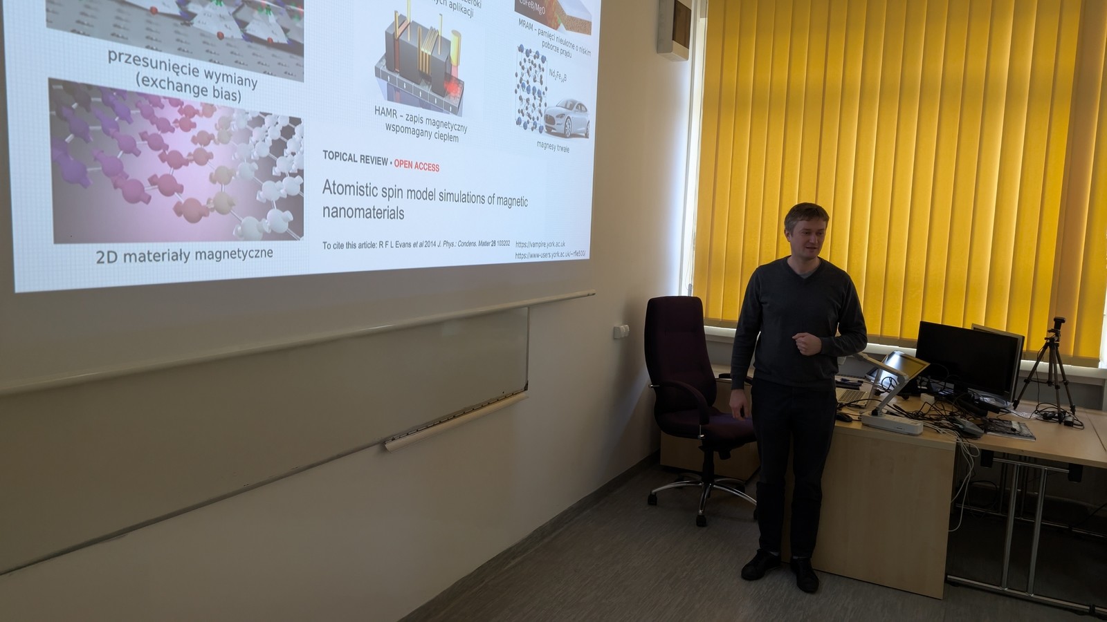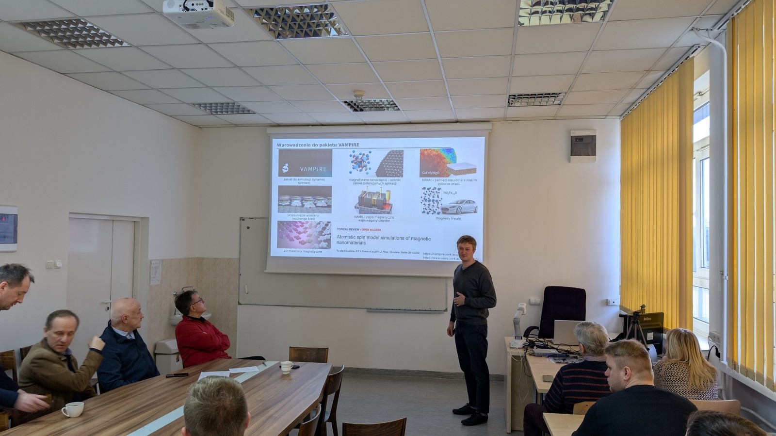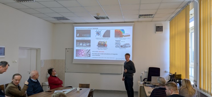 Tematem seminarium było wprowadzenie do obliczeń atomistycznych w kontekście materiałów magnetycznych, z naciskiem na oprogramowanie Vampire. Na seminarium omówione zostaną podstawowe zasady działania tego oprogramowania, jego zastosowanie do analizy właściwości magnetycznych, takich jak moment magnetyczny, anizotropowość magnetyczna, oraz interakcje spinowe. Ponadto, przedstawione zostaną przykłady zastosowań Vampire w badaniach magnetyzmu w różnych materiałach, w tym nanostrukturach, a także zalety i ograniczenia tej metody w kontekście współczesnych badań materiałowych.