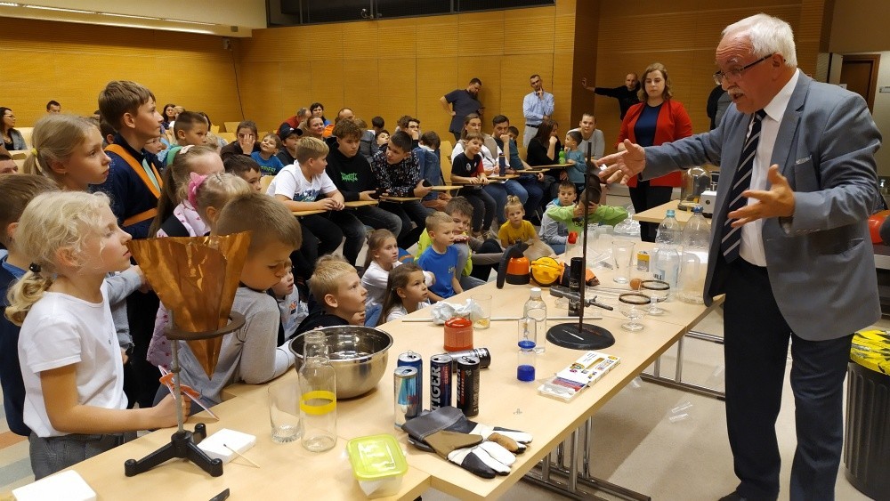 W Politechnice Rzeszowskiej wieczorem 13.10.2023r odbyły się Nocne Spotkania z Nauką. Akcja była adresowana do dzieci, młodzieży oraz rodziców. Osoby zainteresowane i pasjonujące się nowoczesną techniką i nauką miały okazję do zapoznania się z badaniami i infrastrukturą Politechniki Rzeszowskiej. Do tej akcji czynnie włączyli się również pracownicy Wydziału Matematyki i Fizyki Stosowanej. Niesłabnącym zainteresowaniem cieszyły się pokazy z fizyki, które zorganizował dr hab. Tomasz Więcek, prof. PRz wraz z dr inż. Łukaszem Dubielem oraz studentami z Koła Naukowego Foton: Magdaleną Kiełb oraz Mateuszem Argasińskim.