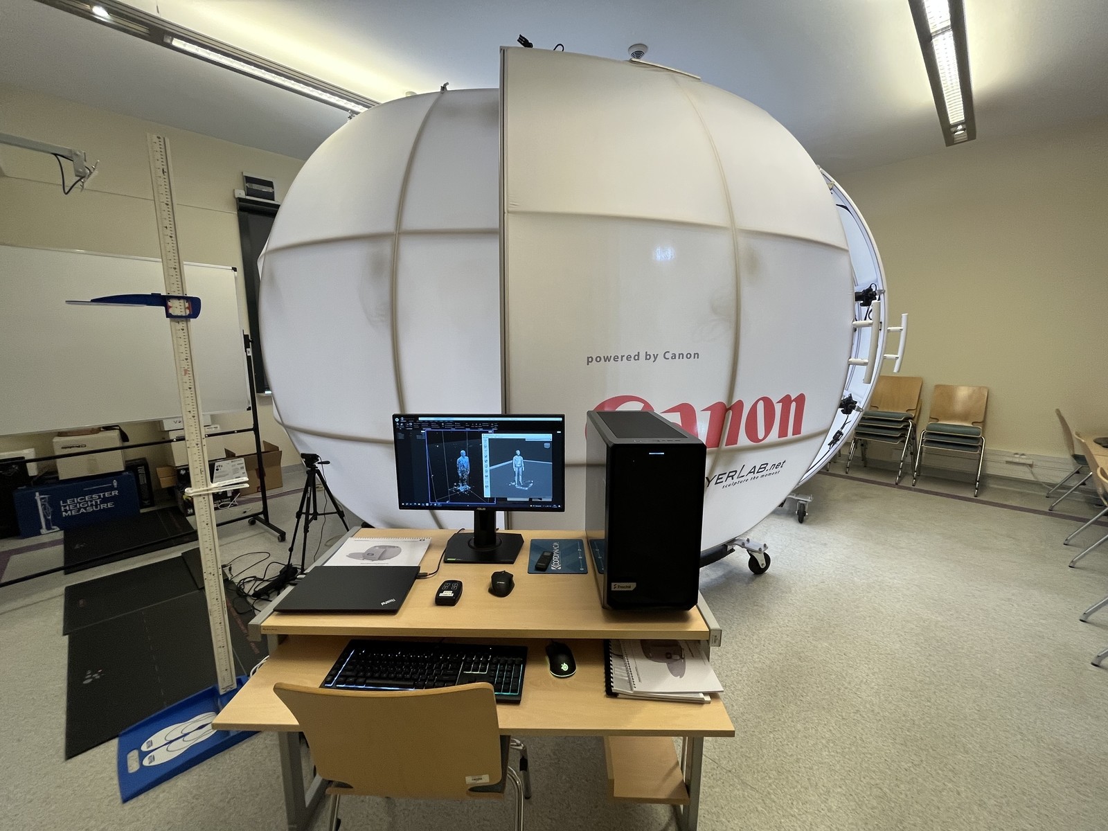 Moduł analizy biomechanicznej składa się m. in. z inercyjnego systemu motion capture typu Xsense Awinda oraz maty pedobarograficznej. Moduł informatyczny obejmuje wysokowydajną jednostkę komputerową z zainstalowanym specjalistycznym oprogramowaniem (m.in. do analizy i modelowania ruchu, projektowania wspomaganego komputerowo, fotogrametrii i wirtualnej rzeczywistości).